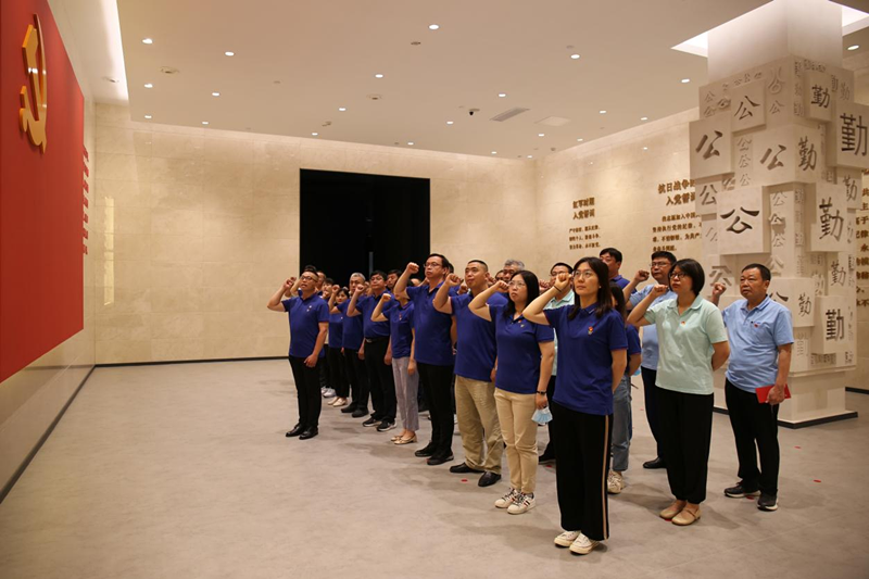 在講解員的引導下,參觀(guān)人員依次參觀(guān)學(xué)習了“不忘初心、牢記使命”序廳、“加強紀律性 革命無(wú)不勝”第一主展廳、“全面從嚴治黨在山東”第二主展廳和警示教育專(zhuān)題展廳。實(shí)物展示層次感豐富,圖文影像科技感十足,現場(chǎng)講解聲情并茂,充分體現了黨中央、山東省委在黨的紀律建設上作出的偉大成就。在警示教育基地,近年來(lái)發(fā)生的各層級人員嚴重違紀違法典型案例直擊內心,給參觀(guān)人員上了一堂深刻的廉政教育課。參加活動(dòng)的全體黨員干部面向黨旗,重溫入黨誓詞,回顧初心錚錚有聲,許下堅守使命的承諾。