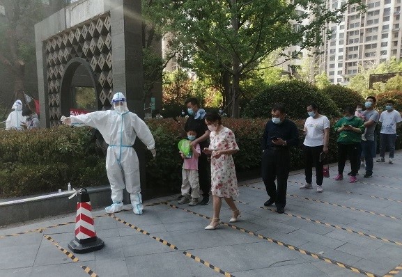 集團支援天橋區濱河雅居的下沉人員由翟思成帶隊,帶領(lǐng)郭正亮、杜瑞帥、趙士民、楊世興、馮鵬飛等5名志愿者,自4月27日進(jìn)駐濱河雅居社區以來(lái),他們聽(tīng)從社區安排,進(jìn)行核酸檢測維持秩序,人員摸排、統計數據等工作?!懊刻煜掳喽嫉猛砩?0點(diǎn)半了”, 翟思成說(shuō),為保證社區居民核酸檢測不漏一人,雖然大家的居住地距離濱河雅居都很遠,但還是克服重重困難按時(shí)到崗,盡職盡責地完成社區工作。特別是自4月28日以來(lái),濱河雅居樓棟出現密接和次密接,需要24小時(shí)管控,金鐘集團的志愿者白天維持核酸檢測秩序、給管控居民送菜送食品,晚上還要值夜班、進(jìn)行住戶(hù)摸查,條件艱苦、工作勞累,但是志愿者們沒(méi)有怨言、只有擔當,他們用實(shí)際行動(dòng)踐行國企責任,使命擔當。
