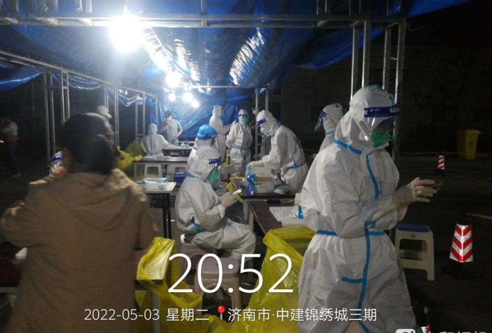在槐蔭區錦繡睿城社區和錦繡城社區,志愿團隊由劉貴武帶隊,閆春貞、李登哲、侯志強、劉欣、張現錄6人組成,他們兵分兩組,每天早上5點(diǎn)30分出發(fā),到達社區后立即開(kāi)始準備核酸檢測,“請大家排好隊”、“請保持1米距離”、“請提前打開(kāi)健康碼”......在核酸采樣現場(chǎng),志愿者們穿著(zhù)隔離衣,戴著(zhù)口罩,這樣的提醒引導要重復幾百次,不一會(huì )兒就口干舌燥,但是他們堅持耐心引導,把疫情防控放在第一位,按規定進(jìn)行消殺,提醒居民保持距離,和病毒賽跑和戰斗,不能有絲毫馬虎和懈怠。他們一直工作到晚上近10點(diǎn),每天回到住處已經(jīng)很晚了,但第二天依然按時(shí)到達社區。劉貴武說(shuō),“醫務(wù)工作者和社區工作者比我們堅守的時(shí)間更長(cháng),他們更辛苦!我作為一名預備黨員,槐蔭隊的隊長(cháng),更應該沖鋒在前,帶領(lǐng)大家圓滿(mǎn)完成任務(wù),接受黨組織的考驗?!?span style="text-indent: 24pt;">