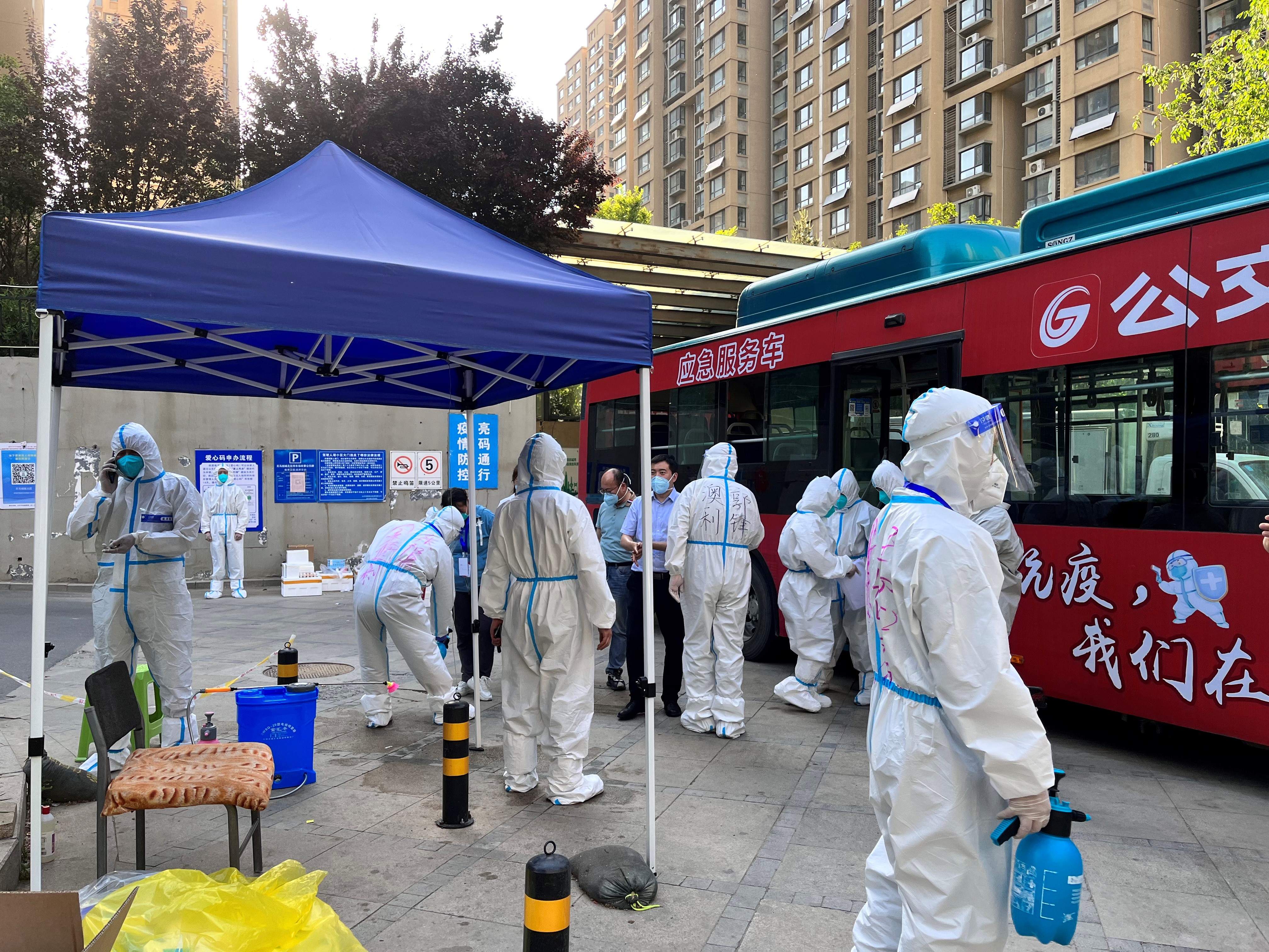 在高新區的臨港街道十八戶(hù)社區、在歷城區的天馬相城社區、侯家小區等多個(gè)社區,到處都能看到澳利抗疫先鋒隊員的身影,他們有的手持測溫設備,堅守進(jìn)村入口;有的與村里人一起扎帳篷、裝垃圾桶、備檢測器械;有的身穿“大白”防護服,在人群中不斷穿梭、維護秩序;有的走在封控區的大街小巷,挨家挨戶(hù)巡查商鋪開(kāi)業(yè)情況;還有的拿著(zhù)酒精噴壺,對指定區域進(jìn)行消殺消毒……