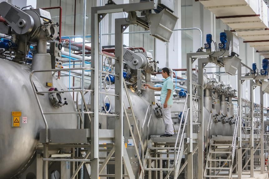 在元首集團針織服裝產(chǎn)業(yè)園,引人注目的不僅是產(chǎn)業(yè)變革和調整,更有智能化升級后的質(zhì)量提升。其中,面料印染作為服裝生產(chǎn)研發(fā)的關(guān)鍵環(huán)節,更能體現出企業(yè)科技創(chuàng )新實(shí)力和綠色發(fā)展水平,也是激活新舊動(dòng)能轉換的“主引擎”。