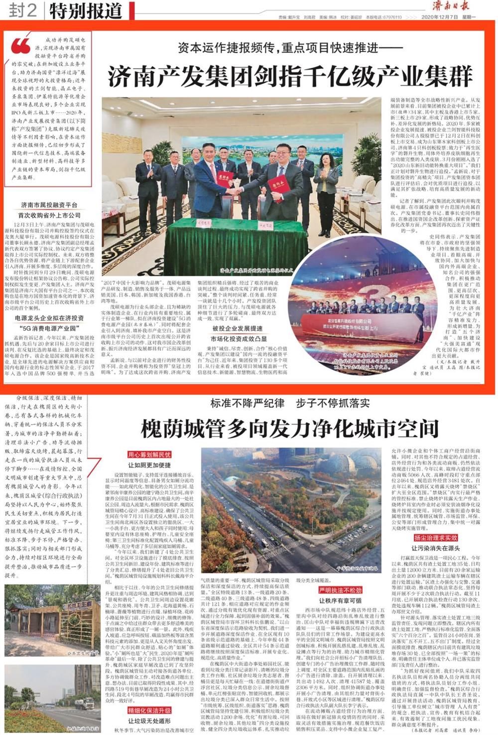 成功并購茂碩電源,實(shí)現濟南市屬?lài)型度谫Y平臺跨省并購的零突破;在新加坡設立業(yè)務(wù)平臺,助力濟南國資“漂洋過(guò)?!闭宫F全球視野的大投資格局;近年來(lái)投資的蘭劍智能、晶正電子、圣泉集團、伊萊特能源等優(yōu)質(zhì)企業(yè)市場(chǎng)表現良好,多個(gè)企業(yè)實(shí)現IPO或新三板上市……2020年,濟南產(chǎn)業(yè)發(fā)展投資集團(以下簡(jiǎn)稱(chēng)“產(chǎn)發(fā)集團”)克服新冠肺炎疫情等不利因素影響,在資本運作方面捷報頻傳,已經(jīng)初步形成了圍繞新一代信息技術(shù)、高端裝備制造業(yè)、新型材料、高科技等多產(chǎn)業(yè)鏈的資本布局,劍指千億級產(chǎn)業(yè)集群。